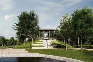 На холме благоустроят беседку с лестницей-амфитеатром и местами отдыха, где в будут проходить небольшие мероприятия и концерты.