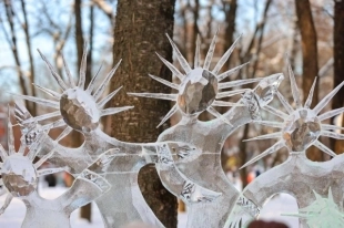 Парк Ветеранов украсили 12 скульптур, которые останутся здесь до наступления тепла. По вечерам композиции будут подсвечены.